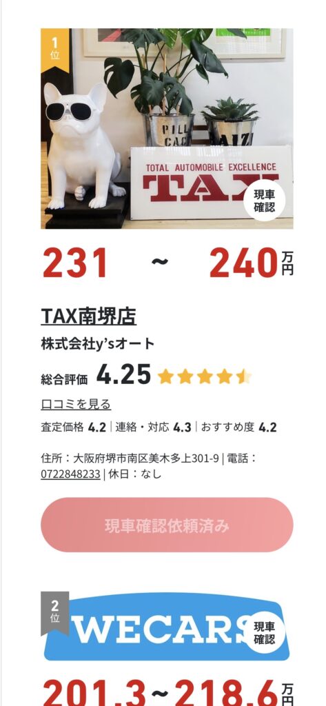 結局2社から連絡があり、現車確認は1社のみ。